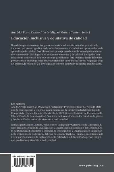 Ana M.ª Porto Castro, es Doctora en Pedagogía y Profesora Titular del Área de Métodos de Investigación y Diagnóstico en Educación de la Universidad de Santiago de Compostela (Galicia-España). Desde el año 2012 dirige el Instituto de Ciencias de la Educación de dicha universidad. Sus áreas de interés incluyen los estudios de género y la educación inclusiva y la atención a la diversidad. Jesús Miguel Muñoz Cantero, es Doctor en Pedagogía y Catedrático de Universidad, en el área de Métodos de Investigación y Diagnóstico en Educación del Departamento de Didácticas Específicas y Métodos de Investigación y Diagnóstico en Educación de la Universidade da Coruña, del cual es Director (Galicia-España). Sus intereses de investigación incluyen la evaluación de la calidad en la Educación Superior, Integridad académica y atención a la diversidad.
