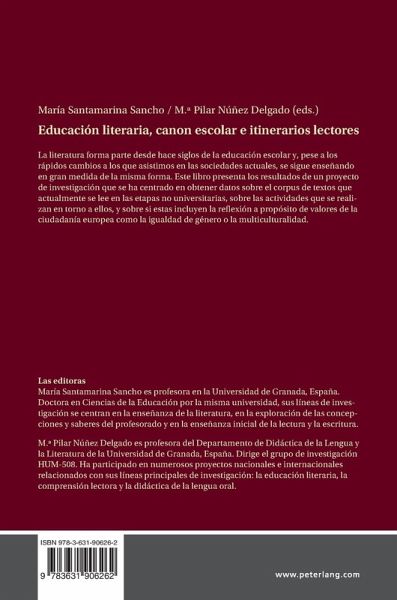 María Santamarina Sancho es profesora en la Universidad de Granada, España. Doctora en Ciencias de la Educación por la misma universidad, sus líneas de investigación se centran en la enseñanza de la literatura, en la exploración de las concepciones y saberes del profesorado y en la enseñanza inicial de la lectura y la escritura. M.ª Pilar Núñez Delgado es profesora del Departamento de Didáctica de la Lengua y la Literatura de la Universidad de Granada, España. Dirige el grupo de investigación HUM-508. Ha participado en numerosos proyectos nacionales e internacionales relacionados con sus líneas principales de investigación: la educación literaria, la comprensión lectora y la didáctica de la lengua oral.