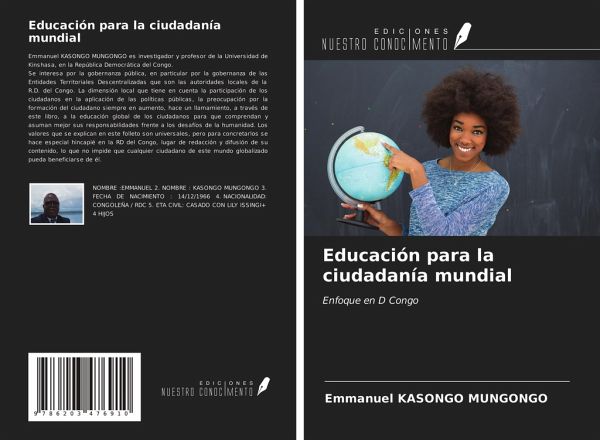 Emmanuel KASONGO MUNGONGO es investigador y profesor de la Universidad de Kinshasa, en la República Democrática del Congo. Se interesa por la gobernanza pública, en particular por la gobernanza de las Entidades Territoriales Descentralizadas que son las autoridades locales de la R.D. del Congo. La dimensión local que tiene en cuenta la participación de los ciudadanos en la aplicación de las políticas públicas, la preocupación por la formación del ciudadano siempre en aumento, hace un llamamiento, a través de este libro, a la educación global de los ciudadanos para que comprendan y asuman mejor sus responsabilidades frente a los desafíos de la humanidad. Los valores que se explican en este folleto son universales, pero para concretarlos se hace especial hincapié en la RD del Congo, lugar de redacción y difusión de su contenido, lo que no impide que cualquier ciudadano de este mundo globalizado pueda beneficiarse de él.
