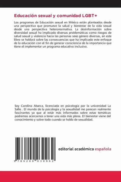 Los programas de Educación sexual en México están planteados desde una perspectiva que promueve la salud y bienestar de la vida sexual desde una perspectiva heteronormativa. La desinformación sobre diversidad sexual ha implicado diversas problemáticas como riesgos de salud sexual y violencia hacia las personas sexo género diversas, en este libro se hablará sobre las consecuencias que ha implicado este enfoque de la educación con el fin de generar consciencia de la importancia que tiene el implementar un programa educativo inclusivo.