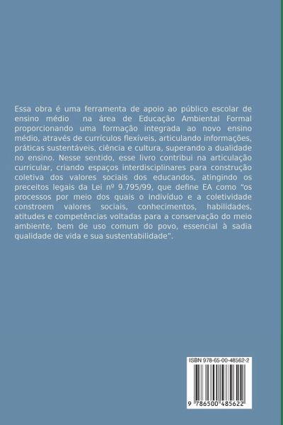 Essa obra é uma ferramenta de apoio ao público escolar de ensino médio auxiliando a promoção da Educação Ambiental formal proporcionando uma formaç