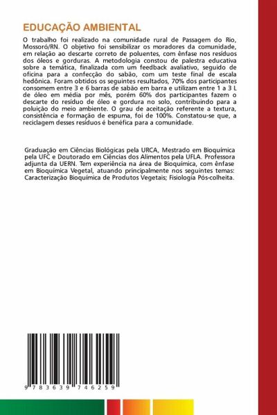 O trabalho foi realizado na comunidade rural de Passagem do Rio, Mossoró/RN. O objetivo foi sensibilizar os moradores da comunidade, em relação ao descarte correto de poluentes, com ênfase nos resíduos dos óleos e gorduras. A metodologia constou de palestra educativa sobre a temática, finalizada com um feedback avaliativo, seguido de oficina para a confecção do sabão, com um teste final de escala hedônica. Foram obtidos os seguintes resultados, 70% dos participantes consomem entre 3 e 6 barras de sabão em barra e utilizam entre 1 a 3 L de óleo em média por mês, porém 60% dos participantes fazem o descarte do resíduo de óleo e gordura no solo, contribuindo para a poluição do meio ambiente. O grau de aceitação referente a textura, consistência e formação de espuma, foi de 100%. Constatou-se que, a reciclagem desses resíduos é benéfica para a comunidade.