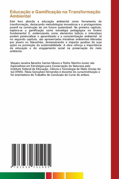 Este livro aborda a educação ambiental como ferramenta de transformação, destacando metodologias inovadoras e o protagonismo juvenil na construção de um futuro sustentável. No primeiro capítulo, explora-se a gamificação como estratégia pedagógica no Ensino Fundamental II, evidenciando como elementos lúdicos e interativos podem potencializar o aprendizado e a conscientização ambiental. Já no segundo capítulo, são apresentadas iniciativas ambientais lideradas por jovens no Maranhão, demonstrando o impacto positivo de suas ações na promoção da sustentabilidade. A obra reforça a importância da educação e do engajamento social na preservação do meio ambiente.
