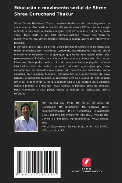 Shree Shree Harichand Thakur, embora tenha estado na retaguarda da sociedade de elite desde a terceira década do século XIX, tem vindo a exigir o direito à educação, o direito à religião, o direito à ação e o direito à honra social. Mais tarde, o seu filho ShreeGuruchand Thakur teve êxito no movimento em prol desse direito e ensinou a grande sociedade intocável de Bengala.É por isso que a ideia de Shree Shree Harichand-Guruchand de educação, movimento educativo, movimento camponês, movimento de reforma social e movimento religioso ----. O que quer que tenha acontecido, todos eles permaneceram…mehr