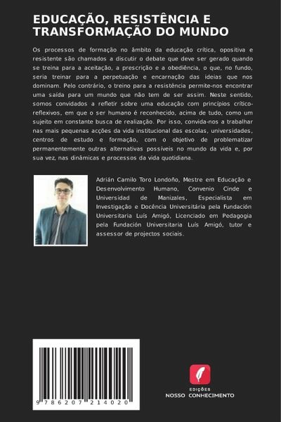Os processos de formação no âmbito da educação crítica, opositiva e resistente são chamados a discutir o debate que deve ser gerado quando se treina para a aceitação, a prescrição e a obediência, o que, no fundo, seria treinar para a perpetuação e encarnação das ideias que nos dominam. Pelo contrário, o treino para a resistência permite-nos encontrar uma saída para um mundo que não tem de ser assim. Neste sentido, somos convidados a refletir sobre uma educação com princípios crítico-reflexivos, em que o ser humano é reconhecido, acima de tudo, como um sujeito em constante busca de realização. Por isso, convida-nos a trabalhar nas mais pequenas acções da vida institucional das escolas, universidades, centros de estudo e formação, com o objetivo de problematizar permanentemente outras alternativas possíveis no mundo da vida e, por sua vez, nas dinâmicas e processos da vida quotidiana.