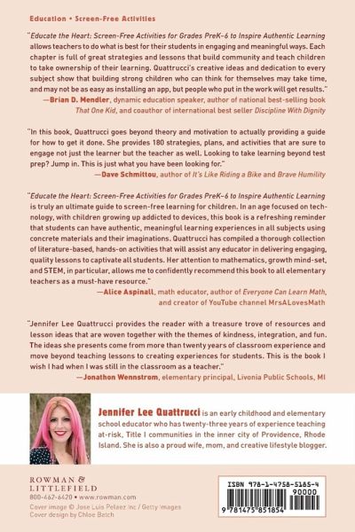 This book includes 180 creatively designed screen-free activities teachers can implement to maximize authentic hands-on learning in their classroom. Chapter topics include promoting peace by empowering students to handle conflict through kindness, literacy centers, STEM challenges, and ways to build connections beyond the classroom door.