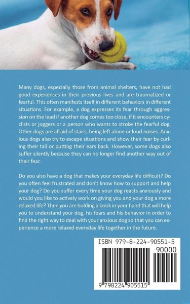 Many dogs, especially those from animal shelters, have not had good experiences in their previous lives and are traumatized or fearful. This often manifests itself in different behaviors in different situations. For example, a dog expresses its fear through aggression on the lead if another dog comes too close, if it encounters cyclists or joggers or a person who wants to stroke the fearful dog. Other dogs are afraid of stairs, being left alone or loud noises. Anxious dogs also try to escape situations and show their fear by curling their tail or putting their ears back. However, some dogs also suffer silently because they can no longer find another way out of their fear. Do you also have a dog that makes your everyday life difficult? Do you often feel frustrated and don't know how to support and help your dog? Do you suffer every time your dog reacts anxiously and would you like to actively work on giving you and your dog a more relaxed life? Then you are holding a book in your hand that will help you to understand your dog, his fears and his behavior in order to find the right way to deal with your anxious dog so that you can experience a more relaxed everyday life together in the future.