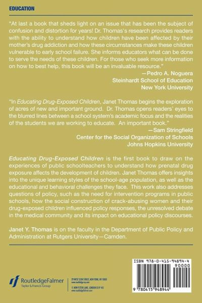 This is the first book to use teachers' experiences to understand how prenatal drug exposure affects children's' development , and how social construction of the problem influences perceptions within schools.