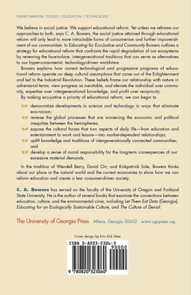 C. A. BOWERS has served on the faculty of the University of Oregon and Portland State University. He is the author of several books that examine the connections between education, culture, and the environmental crisis, including Educating for an Ecologically Sustainable Culture and The Culture of Denial.