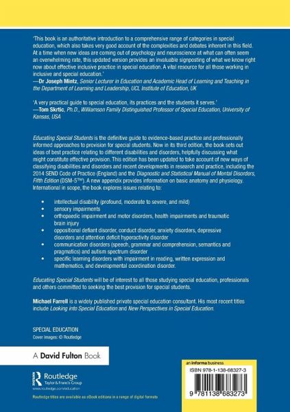 Educating Special Students is the definitive guide to evidence based practice and professionally informed approaches to provision for special students.