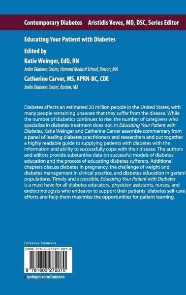 Diabetes affects an estimated 20 million people in the United States, with many people remaining unaware that they suffer from the disease. While the number of diabetics continues to rise, the number of caregivers who specialize in diabetes treatment does not. In Educating Your Patient with Diabetes, Katie Weinger and Catherine Carver assemble commentary from a panel of leading diabetes practitioners and researchers and put together a highly readable guide to supplying patients with diabetes with the information and ability to successfully cope with their disease. The authors and editors provide substantive data on successful models of diabetes education and the process of educating diabetes sufferers. Additional chapters discuss diabetes in pregnancy, the challenge of weight and diabetes management in clinical practice, and diabetes education in geriatric populations. Timely and accessible, Educating Your Patient with Diabetes is a must have for all diabetes educators, physician assistants, nurses, and endocrinologists who endeavor to support their patients' diabetes self-care efforts and help them maximize the opportunities for patient learning.