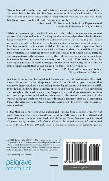 "While he acknowledges that it will take more than schools to change our current systems of thought and action, Dr. Shapiro also acknowledges that schools offer us the opportunity to show our children a different way to be - a way to peace. While his vision is idealistic, his analysis is firmly planted in the inequities of today. He describes the suffering in the world with explicit candor, yet his critique never loses the humanity of the actors in our social conflicts and thus, the possibility for real transformation. His language invites us in and speaks to the most noble, humane, and compassionate sides of ourselves. By the end, we want to transform the education system because it seems like the most just thing to do. This book could not be more significant as it addresses the despair in the world today and gives us a sensible path for hope, a path that we can realize if we trust our better impulses." - Daniel Chapman, Assistant Professor of Curriculum Studies, Georgia Southern University