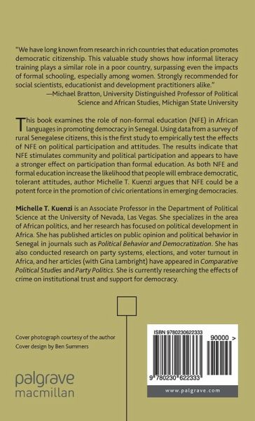 "We have long known from research in rich countries that education promotes democratic citizenship. This valuable study shows how informal literacy training plays a similar role in a poor country, surpassing even the impacts of formal schooling, especially among women. Strongly recommended for social scientists, educationist and development practitioners alike." - Michael Bratton, University Distinguished Professor of Political Science and African Studies, Michigan State University