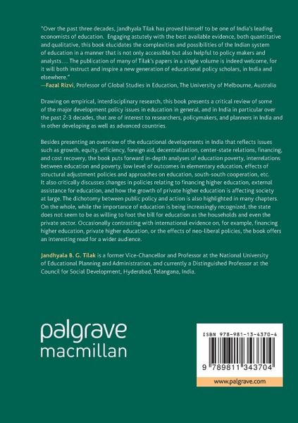 Drawing on empirical, interdisciplinary research, this book presents a critical review of some of the major issues that are of interest to researchers, policymakers and planners in developing as well as advanced countries, including specifically in India. It provides an in-depth review of some of the major development policy issues in education in general, and in India in particular, over the past 2-3 decades.