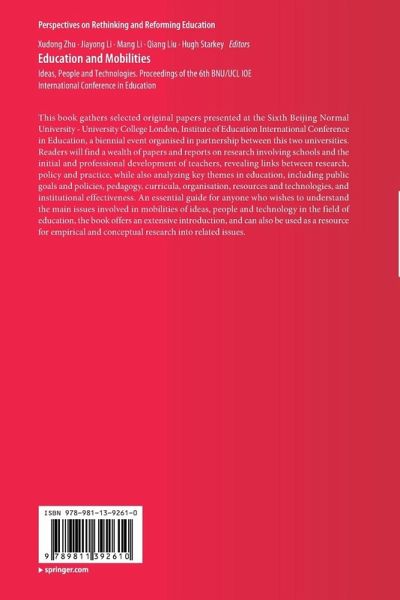 This book gathers selected original papers presented at the Sixth Beijing Normal University - University College London, Institute of Education International Conference in Education, a biennial event organised in partnership between this two universities. Readers will find a wealth of papers and reports on research involving schools and the initial and professional development of teachers, revealing links between research, policy and practice, while also analyzing key themes in education, including public goals and policies, pedagogy, curricula, organisation, resources and technologies, and institutional effectiveness. An essential guide for anyone who wishes to understand the main issues involved in mobilities of ideas, people and technology in the field of education, the book offers an extensive introduction, and can also be used as a resource for empirical and conceptual research into related issues.
