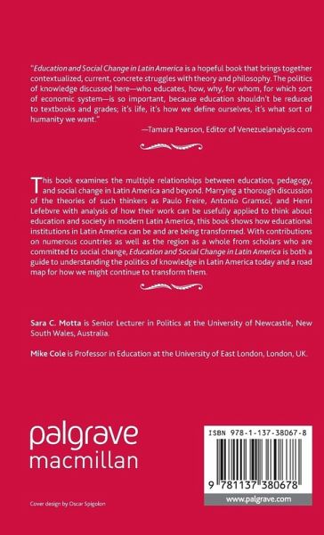 "Education and Social Change in Latin America is a hopeful book which brings together contextualised, current, concrete struggles with theory and philosophy. The politics of knowledge discussed here who educates, how, why, for whom, for which sort of economic system is so important, because education shouldn't be reduced to textbooks and grades; it's life, it's how we define ourselves, it's what sort of humanity we want." Tamara Pearson, Editor of Venezuelanalysis.com