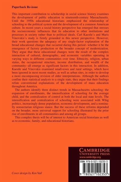 This important contribution to scholarship in social science history examines the development of public education in nineteenth-century Massachusetts.