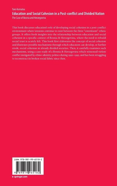 This book discusses education's role of developing social cohesion in a post-conflict environment where tensions continue to exist between the three "constituent" ethnic groups. It offers fresh insights into the relationship between education and social cohesion in a specific context of Bosnia & Herzegovina, where the need to rebuild social trust is acutely felt. This book first elaborates the concept of social cohesion and illustrates possible mechanisms through which education can develop, or further erode, social cohesion in already divided societies. Then, it carefully examines such mechanisms, using a case study of a Bosnia & Herzegovina which witnessed violent conflict instigated by ethno-identity politics during 1992-1995, and has been struggling to reconstruct its broken social fabric since then.