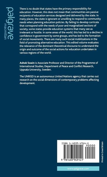 Education plays a very important role in breaking the cycle of poverty and increasing opportunity. Various forms of social movements play an important role in providing educational opportunities to communities and social groups that might otherwise be excluded, filling the gap left by the state. This book critically examines the origin and outcome of social action for education in different parts of the world.