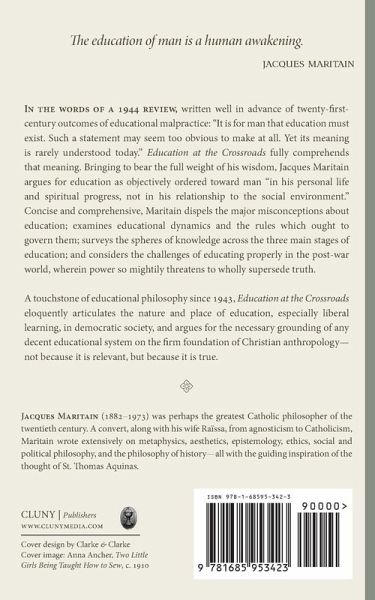 In the words of a 1944 review, written well in advance of twenty-first-century outcomes of educational malpractice: "It is for man that education must exist. Such a statement may seem too obvious to make at all. Yet its meaning is rarely understood today." Education at the Crossroads fully comprehends that meaning. Bringing to bear the full weight of his wisdom, Jacques Maritain argues for education as objectively ordered toward man "in his personal life and spiritual progress, not in his relationship to the social environment." Concise and comprehensive, Maritain dispels the major misconceptions about education; examines educational dynamics and the rules which ought to govern them; surveys the spheres of knowledge across the three main stages of education; and considers the challenges of educating properly in the post-war world, wherein power so mightily threatens to wholly supersede truth. A touchstone of educational philosophy since 1943, Education at the Crossroads eloquently articulates the nature and place of education, especially liberal learning, in democratic society, and argues for the necessary grounding of any decent educational system on the firm foundation of Christian anthropology-not because it is relevant, but because it is true. The education of man is a human awakening. (Jacques Maritain)