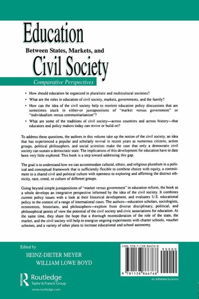 Contents: Preface. H-D. Meyer W.L. Boyd Civil Society Pluralism and Education--Introduction and Overview. H-D. Meyer Civil Society and Education--The Return of an Idea. K.A. Strike Civil Society and Schooling: Particularistic Voices and Public Space. I. Richter The Idea of an Education Mix: A Proposal to Strengthen Civil Society and Education in Germany. A. Dijkstra J. Dronkers Church State and Civil Society: The Netherlands' System of Schooling. G. Walford The State and the Civil Society in Education in England: Past Developments and Current Problems. J. Herbst Schools Between State and Civil Society in Germany and the United States: A Historical Perspective. H-D. Meyer Educational Autonomy in a Civil Society: A Model of Checks and Balances. B.S. Cooper E.V. Randall Vouchers: Still (Largely) Untested and Why. M. Weiss Education and the Third Sector: A Critical View. D.J. Brown School Voluntarism Social Capital and Civil Society. W.L. Boyd Balancing the State Markets and Civil Society in Education Reform: Trends and Issues in England and the United States. K. Mundy L. Murphy Beyond the Nation-State: Educational Contention in Global Civil Society.