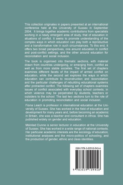 This collection originates in papers presented at an international conference held at the University of Sussex in September 2004. It brings together academic contributions from specialists working in a newly emergent area of study, that of education in situations of conflict. It seeks to promote understanding of the complex ways in which education can play both a reproductive and a transformative role in such circumstances. To this end, it offers two broad perspectives, one around education in conflict and post-conflict settings, and the other around education for reconciliation and social inclusion. The book is organised into thematic sections, with material drawn from countries undergoing, or emerging from, conflict as well as from more stable societies. The first set of chapters examines different facets of the impact of armed conflict on education, while the second set explores the ways in which education can contribute to reconstruction and reconciliation and the particular challenges of rebuilding educational systems after protracted conflict. The following set of chapters examines issues of conflict associated with everyday school contexts, in which violence may be perpetrated by students, teachers or outsiders to the school. The last two sections turn to the role of education in promoting reconciliation and social inclusion.