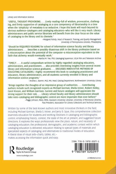 Written by some of the best-known authors and most innovative thinkers in the field, including Michael Gorman, Sheila S. Intner, and Jerry D. Saye, this comprehensive collection examines education for students and working librarians in cataloging and bibliographic control, emphasizing history, context, the state of the art at present, and suggested future directions. It explores the ways professionals view the place, nature, and necessity of cataloging education; the professional, demographic, and academic context within which cataloging education is delivered; education relating to special types of materials and specialized aspects of cataloging; and alternatives to traditional modes of education. A liberal dose of visual aidscharts, tables, etc.makes accessing the information quick and easy.