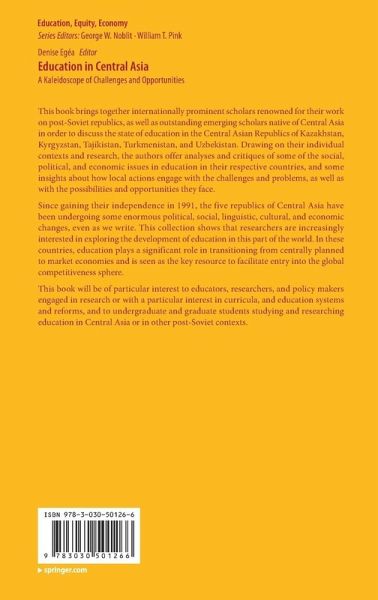 Since gaining their independence in 1991, the five republics of Central Asia have been undergoing some enormous political, social, linguistic, cultural, and economic changes, even as we write. This collection shows that researchers are increasingly interested in exploring the development of education in this part of the world. In thesecountries, education plays a significant role in transitioning from centrally planned to market economies and is seen as the key resource to facilitate entry into the global competitiveness sphere.