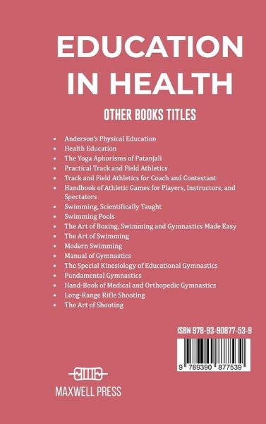 The problem of health education, The methods of health education, Health education through physical education and instruction in hygiene, Health teaching and language, Education in health in reading, Civics and education in health, Health teaching and history, Relation of geography to the conservation of health, Arithmetic's contribution to health education, Health education through drawing, Manual Training and home economics as related to health education, Administration of health program