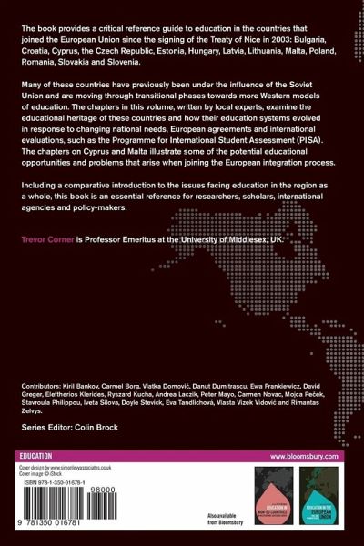 The volume provides a comprehensive reference resource for education in the countries that joined the European Union between the signing of the Treaty of Nice to the present time: Bulgaria, Croatia, Cyprus, the Czech Republic, Estonia, Hungary, Latvia, Lithuania, Malta, Poland, Romania, Slovakia and Slovenia. Many of these countries have previously been under the influence of the Soviet Union and are moving through transitional phases towards more western models. The chapters in this volume, written by regional experts, examine the educational heritage of these countries and how these education systems evolved in response to changing national needs, European agreements including the Treaty of Nice and The Bologna Process, and international evaluations such as the Programme for International Student Assessment (PISA). The chapters on Cyprus and Malta show the very special circumstances of these two Mediterranean islands and the international influences that have underpinned their developments in education.