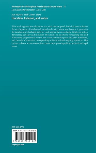 This book approaches education as a vital human good, both because it fosters the development of intellectual, moral and civic virtues, and because it promotes the development of valuable skills for work and for life. Accordingly, debates on justice, democracy, equality and inclusion often focus on questions concerning the kind of education people should receive, how scarce educational goods should be distributed, and the role of education in responding to historical and ongoing injustices. This volume collects 16 new essays that explore these pressing ethical, political and legal issues.