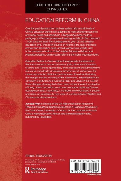 This book examines the extensive reforms at the early childhood, primary and secondary levels which have taken place in China in recent years, including those in curriculum goals, structure and content, teaching and learning approaches, and assessment and administrative structures.