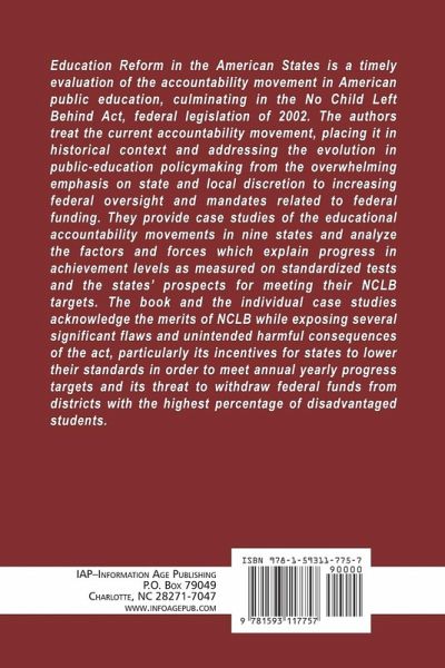 Education Reform in the American States is a timely evaluation of the accountability movement in American public education, culminating in the No Child Left Behind Act, federal legislation of 2002. The authors treat the current accountability movement, placing it in historical context and addressing the evolution in public education policymaking from the overwhelming emphasis on state and local discretion to increasing federal oversight and mandates related to federal funding. They provide case studies of the educational accountability movements in nine states and analyze the factors and forces which explain progress in achievement levels as measured on standardized tests and the states' prospects for meeting their NCLB targets. The book and the individual case studies acknowledge the merits of NCLB while exposing several significant flaws and unintended harmful consequences of the act, particularly its incentives for states to lower their standards in order to meet annual yearly progress targets and its threat to withdraw federal funds from districts with the highest percentage of disadvantaged students. The audience for this study includes local, state and federal education policyrnakers; administrators and instructors in schools of education and other teaching programs, educators; and the general public.