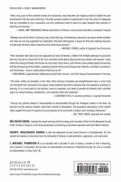 Preface Chapter 1: A Risk Worth Taking Chapter 2: Getting Started Chapter 3: Creating a Learning Space Chapter 4: Teacher Autonomy Chapter 5: Growth Mindset Chapter 6: Creating a Vision Chapter 7: Sharing a Vision so that is Becomes a Shared Vision Chapter 8: Changing a Learning Space Chapter 9: Financial Awareness Chapter 10: Administrator Autonomy Chapter 11: Decision Making: Choice and Comfort Chapter 12: The Learning Space and Student Autonomy in the Classroom Chapter 13: Different Vision of Risk: Differentiation and Individualism in the Classroom Chapter 14: Elementary School Learning Spaces Chapter 15: Middle School Learning Spaces Chapter 16: High School Learning Spaces About the Authors