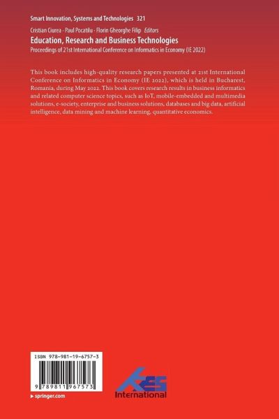 This book includes high-quality research papers presented at 21st International Conference on Informatics in Economy (IE 2022), which is held in Bucharest, Romania, during May 2022. This book covers research results in business informatics and related computer science topics, such as IoT, mobile-embedded and multimedia solutions, e-society, enterprise and business solutions, databases and big data, artificial intelligence, data mining and machine learning, quantitative economics.