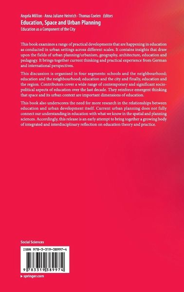 This book examines a range of practical developments that are happening in education as conducted in urban settings across different scales. It contains insights that draw upon the fields of urban planning/urbanism, geography, architecture, education and pedagogy. It brings together current thinking and practical experience from German and international perspectives.