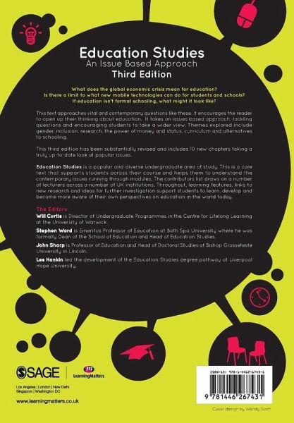 Education Studies continues to grow as a popular undergraduate area of study. This core text addresses themes common to all Education Studies courses. It benefits from a large list of chapters from key contributors at key institutions. This third edition has been completely revised and updated with the addition of seven new chapters. Themes newly explored include gender, research, the power of money and status and alternatives to schooling. This fully comprehensive text is accessibly written, with learning features throughout to encourage students to approach issues critically. Fully up-to-date and covering a huge range of themes for Education Studies students.