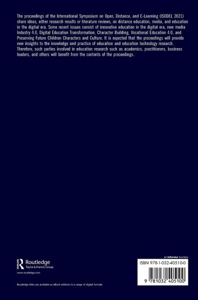 The proceedings of the International Symposium on Open, Distance, and E-Learning (ISODEL 2021) share ideas, either research results or literature reviews, on distance education, media, and education in the digital era. Some recent issues consist of innovative education in the digital era, new media Industry 4.0, Digital Education Transformation, Character Building, Vocational Education 4.0, and Preserving Future Children Characters and Culture. It is expected that the proceedings will provide new insights to the knowledge and practice of education and education technology research. Therefore, such parties involved in education research such as academics, practitioners, business leaders, and others will benefit from the contents of the proceedings.