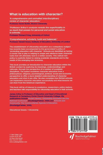 The establishment of citizenship education as a compulsory subject has recently been accompanied by the government's policy of 'promoting education with character.' Schools are identified as having a crucial role to play in helping to shape and reinforce basic character traits that will ultimately lead to a better society. This radical new policy is explicitly linked to raising academic standards and to the needs of the emerging new economy. This book provides an introduction to character education within the British context by exploring its meanings, understandings, and rationale, through the perspective of a number of academic disciplines. The author examines character education from a philosophical, religious, psychological, political, social and economic perspective to offer a more detailed understanding of character education and what it can offer. He also considers how British schools can implement character education successfully and what lessons we can draw from the American experience. This book will be of interest to academics, researchers, policy makers and teachers with responsibility for citizenship education in their schools.
