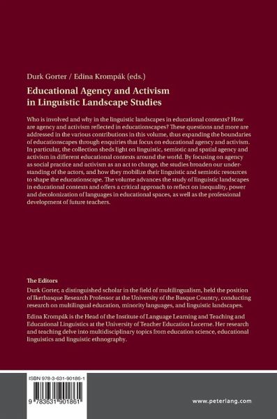 Who is involved and why in the linguistic landscapes in educational contexts? How are agency and activism reflected in educationscapes? These questions and more are addressed in the various contributions in this volume, thus expanding the boundaries of educationscapes through enquiries that focus on educational agency and activism. In particular, the collection sheds light on linguistic, semiotic and spatial agency and activism in different educational contexts around the world. By focusing on agency as social practice and activism as act to change, the studies broaden our understanding of the actors, and how they mobilize their linguistic and semiotic resources to shape the educationscape. The volume advances the study of linguistic landscapes in educational contexts and offers a critical approach to reflect on inequality, power and decolonialization of languages in educational spaces, as well as the professional development of future teachers.