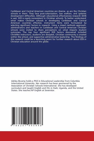 Caribbean and Central American countries are diverse, as are the Christian schools in them. They face post-colonization, low welfare, and systemic development difficulties. Although educational effectiveness research (EER) is vast, EER is nearly nonexistent in Christian schools. To better understand what makes Christian schools in developing Caribbean and Central American countries effective, instrument items were formulated by selecting significant factors in research. Using a mixed methods approach, administrators and teachers in Caribbean and Central American Christian schools were invited to share perceptions on what impacts student outcomes. The top four significant EER factors discovered included Christlike instructors, students are discipled, Christian community is created within the school, and supportive administrative leadership. The findings of this research could be a launching point for further research about EER in Christian education around the globe.