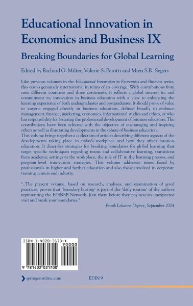 This volume brings together a collection of articles describing different aspects of the developments taking place in today's workplace and how they affect business education. It describes strategies for breaking boundaries for global learning. These target specific techniques regarding teams and collaborative learning, transitions from academic settings to the workplace, the role of IT in the learning process, and program-level innovation strategies. This volume addresses issues faced by professionals in higher and further education and also those involved in corporate training centers and industry.