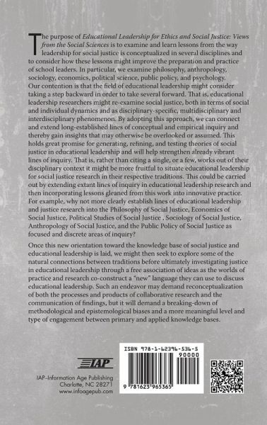 A volume in Educational Leadership for Social Justice Series Editor Jeffrey S. Brooks, University of Idaho, Denise E. Armstrong, Brock University; Ira Bogotch, Florida Atlantic University; Sandra Harris, Lamar University; Whitney H. Sherman, Virginia Commonwealth University; George Theoharis, Syracuse University The purpose of this book is to examine and learn lessons from the way leadership for social justice is conceptualized in several disciplines and to consider how these lessons might improve the preparation and practice of school leaders. In particular, we examine philosophy, anthropology, sociology, economics, political science, public policy, and psychology. Our contention is that the field of educational leadership might consider taking a step backward in order to take several forward. That is, educational leadership researchers might re-examine social justice, both in terms of social and individual dynamics and as disciplinary-specific, multidisciplinary and interdisciplinary phenomenon. By adopting this approach, we can connect and extend long-established lines of conceptual and empirical inquiry and thereby gain insights that may otherwise be overlooked or assumed. This holds great promise for generating, refining, and testing theories of social justice in educational leadership and will help strengthen already vibrant lines of inquiry. That is, rather than citing a single, or a few, works out of their disciplinary context it might be more fruitful to situate educational leadership for social justice research in their respective traditions. This could be carried out by extending extant lines of inquiry in educational leadership research and then incorporating lessons gleaned from this work into innovative practice. For example, why not more clearly establish lines of educational leadership and justice research into the Philosophy of Social Justice, Economics of Social Justice, Political Studies of Social Justice , Sociology of Social Justice, Anthropology of Social Justice, and the Public Policy of Social Justice as focused and discrete areas of inquiry? Once this new orientation toward the knowledge base of social justice and educational leadership is laid, we might then seek to explore some of the natural connections between traditions before ultimately investigating justice in educational leadership through a free association of ideas as the worlds of practice and research co-construct a "new" language they can use to discuss educational leadership. Such an endeavor may demand reconceptualization of both the processes and products of collaborative research and the communication of findings, but it will demand a breaking-down of methodological and epistemological biases and a more meaningful level and type of engagement between primary and applied knowledge bases.