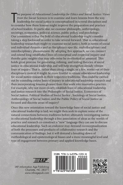 A volume in Educational Leadership for Social Justice Series Editor Jeffrey S. Brooks, University of Idaho, Denise E. Armstrong, Brock University; Ira Bogotch, Florida Atlantic University; Sandra Harris, Lamar University; Whitney H. Sherman, Virginia Commonwealth University; George Theoharis, Syracuse University The purpose of this book is to examine and learn lessons from the way leadership for social justice is conceptualized in several disciplines and to consider how these lessons might improve the preparation and practice of school leaders. In particular, we examine philosophy, anthropology, sociology, economics, political science, public policy, and psychology. Our contention is that the field of educational leadership might consider taking a step backward in order to take several forward. That is, educational leadership researchers might re-examine social justice, both in terms of social and individual dynamics and as disciplinary-specific, multidisciplinary and interdisciplinary phenomenon. By adopting this approach, we can connect and extend long-established lines of conceptual and empirical inquiry and thereby gain insights that may otherwise be overlooked or assumed. This holds great promise for generating, refining, and testing theories of social justice in educational leadership and will help strengthen already vibrant lines of inquiry. That is, rather than citing a single, or a few, works out of their disciplinary context it might be more fruitful to situate educational leadership for social justice research in their respective traditions. This could be carried out by extending extant lines of inquiry in educational leadership research and then incorporating lessons gleaned from this work into innovative practice. For example, why not more clearly establish lines of educational leadership and justice research into the Philosophy of Social Justice, Economics of Social Justice, Political Studies of Social Justice , Sociology of Social Justice, Anthropology of Social Justice, and the Public Policy of Social Justice as focused and discrete areas of inquiry? Once this new orientation toward the knowledge base of social justice and educational leadership is laid, we might then seek to explore some of the natural connections between traditions before ultimately investigating justice in educational leadership through a free association of ideas as the worlds of practice and research co-construct a "new" language they can use to discuss educational leadership. Such an endeavor may demand reconceptualization of both the processes and products of collaborative research and the communication of findings, but it will demand a breaking-down of methodological and epistemological biases and a more meaningful level and type of engagement between primary and applied knowledge bases.