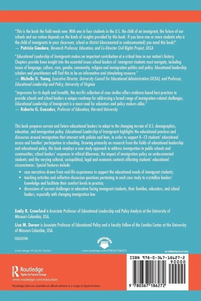Educational Leadership of Immigrants highlights the educational practices and discourses around immigration that intersect with policies and laws, in order to support K-12 students' educational access and families' participation in schooling. Drawing primarily on research from the fields of educational leadership and educational policy, this book employs a case study approach to address immigration in public schools and communities; school leaders' responses to ethical dilemmas; the impact of immigration policy on undocumented students; and the varying cultural, sociopolitical, legal and economic contexts affecting students' educational circumstances. This book prepares current and future educational leaders to adapt to the changing terrain of U.S. demographics, education, and immigration policy. Special features include: case narratives drawn from real-life experiences to support the educational needs of immigrant students; teaching activities and reflective discussion questions pertaining to each case study to crystallize leaders' knowledge and facilitate their comfort levels in practice; discussions of current challenges in education facing immigrant students, their families, educators, and school leaders, especially with changing immigration law.