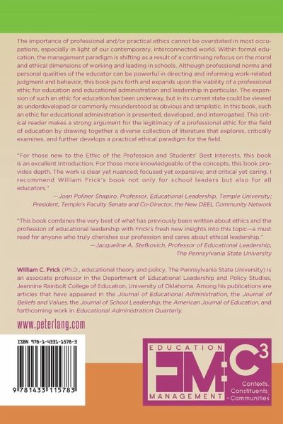 «For those new to the Ethic of the Profession and Students' Best Interests, this book is an excellent introduction. For those more knowledgeable of the concepts, this book provides depth. The work is clear yet nuanced; focused yet expansive; and critical yet caring. I recommend William Frick's book not only for school leaders but also for all educators.» (Joan Poliner Shapiro, Professor, Educational Leadership, Temple University President, Temple's Faculty Senate and Co-Director, the New DEEL Community Network) «This book combines the very best of what has previously been written about ethics and the profession of educational leadership with Frick's fresh new insights into this topic-a must read for anyone who truly cherishes our profession and cares about ethical leadership.» (Jacqueline A. Stefkovich, Professor of Educational Leadership, The Pennsylvania State University)
