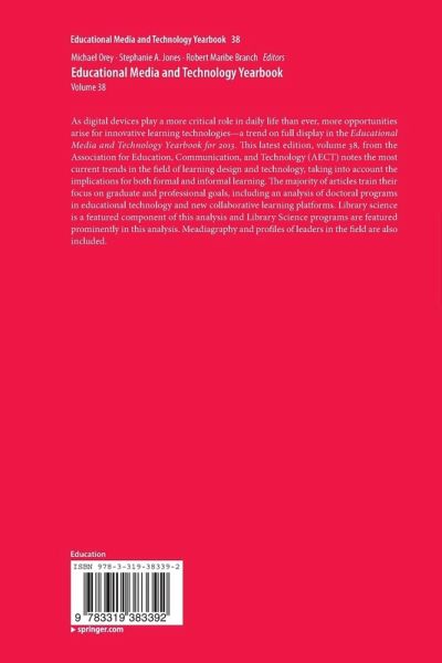The latest edition of the Educational Media and Technology Yearbook, from the Association for Education, Communication and Technology (AECT), notes the most current trends in the field of learning design and technology, taking into account the implications for both formal and informal learning. Pivotal research and discussion surrounding educational trends, leadership, organizations and programs have all been updated from volume 37. Chapters train their focus on graduate and professional goals, including an analysis of doctoral programs in educational technology and new collaborative learning platforms. Library science is a featured component of this analysis and Library Science programs are featured prominently in this analysis. This edition also features new content on mediagraphy.