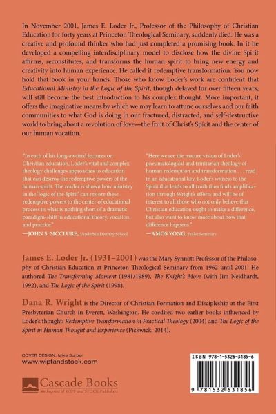 In November 2001, James E. Loder Jr., Professor of the Philosophy of Christian Education for forty years at Princeton Theological Seminary, suddenly died. He was a creative and profound thinker who had just completed a promising book. In it he developed a compelling interdisciplinary model to disclose how the divine Spirit affirms, reconstitutes, and transforms the human spirit to bring new energy and creativity into human experience. He called it redemptive transformation. You now hold that book in your hands. Those who know Loder's work are confident that Educational Ministry in the Logic of the Spirit, though delayed for over fifteen years, will still become the best introduction to his complex thought. More important, it offers the imaginative means by which we may learn to attune ourselves and our faith communities to what God is doing in our fractured, distracted, and self-destructive world to bring about a revolution of love--the fruit of Christ's Spirit and the center of our human vocation.