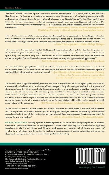 The Educational Morass is about the ineffectiveness of public education in the United States today and why it is unlikely to achieve significant improvement in the absence of heavy external pressure. The reason for these conclusions and what can be done about it are the core of this book. It is an explanation of why the most popular educational reforms are either misguided or practically impossible to achieve. The book also explains why several reforms which would bring about significant improvement are not under consideration. Although a conservative himself, Lieberman asserts that conservative illusions about public education and about unions and employment issues generally also play a major role in the failure to bring about significant reform. Public education is a highly decentralized public service, buffeted by national, state, and local interests and reported by media that are not up to the task of describing the situation realistically. Despite these negative aspects, Myron Lieberman contends that major reforms are possible, but require different leaders, strategies, and tactics.