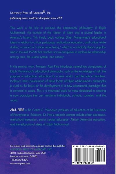 This work is the first to examine the educational philosophy of Elijah Muhammad, the founder of the Nation of Islam and a pivotal leader in America's history. This timely book outlines Elijah Muhammad's educational ideas in relation to critical pedagogy, multicultural education, and critical white studies, a branch of "critical race theory"- which is a scholarly theory popularized in the mid-1970s and reaches across disciplines to explore the relationship among race, the justice system, and society. In this seminal work, Professor Pitre introduces several key components of Elijah Muhammad's educational philosophy, such as the knowledge of self; the purpose of education; education for a new world; and the role of teachers. Professor Pitre's presentation of these facets of Elijah Muhammad's philosophy is used as the basis for the development of a new educational paradigm that is universal in scope. This is a must-read book for those dedicated to creating a new paradigm that can transform individuals, schools, societies, and the world.